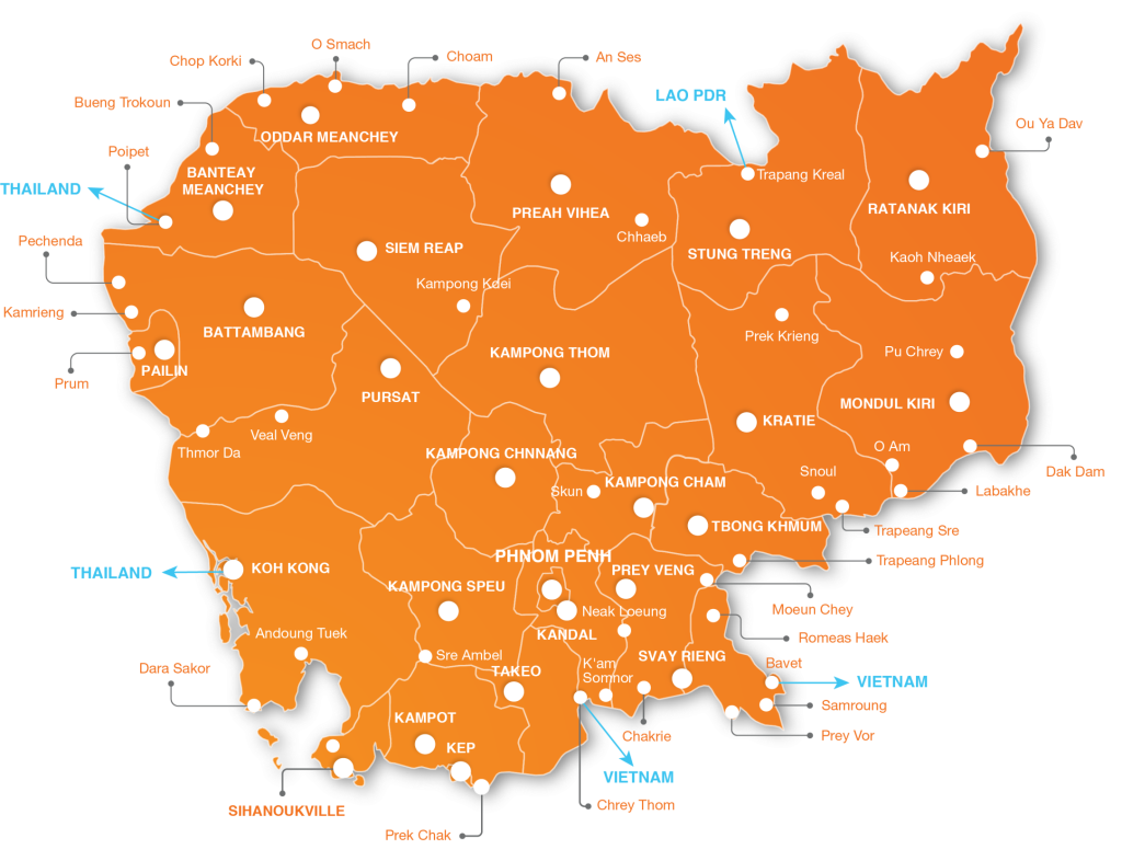 ANGKOR DATA INFRASTRUCTURE CO., LTD. Cover the Nationwide Network, featuring 33 DWDM nodes, is available in 25 Cities/Provinces , with ongoing expansion and development across the country.
